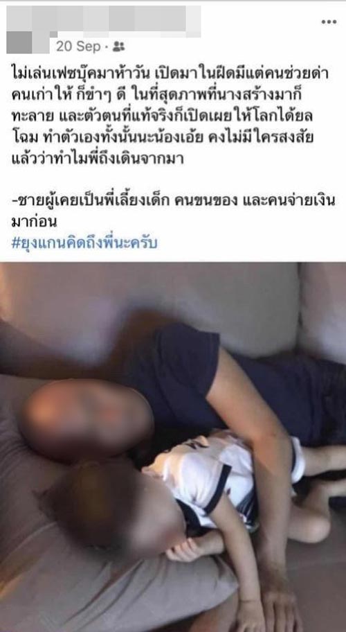 และล่าสุด (7 ตุลาคม 2563) ก็มีชาวเน็ตออกมาเผยโพสต์ของผู้ชายคนหนึ่ง ซึ่งเคยมีภาพสนิทสนมใกล้ชิดกับซาร่า ระบุว่า "ไม่เล่นเฟซบุ๊กมา 5 วัน เปิดมาในฟีดมีแต่คนช่วยด่าคนเก่าให้ ก็ขำ ๆ ดี ในที่สุดภาพที่นางสร้างมาก็ทลาย และตัวตนที่แท้จริงก็เปิดเผยให้โลกได้ยลโฉม ทำตัวเองทั้งนั้นนะน้องเอ๊ย คงไม่มีใครสงสัยแล้วว่าทำไมพี่ถึงเดินจากมา - ชายผู้เคยเป็นพี่เลี้ยงเด็ก คนขนของ และคนจ่ายเงินมาก่อน #ยุงแกนคิดถึงพี่นะครับ"
