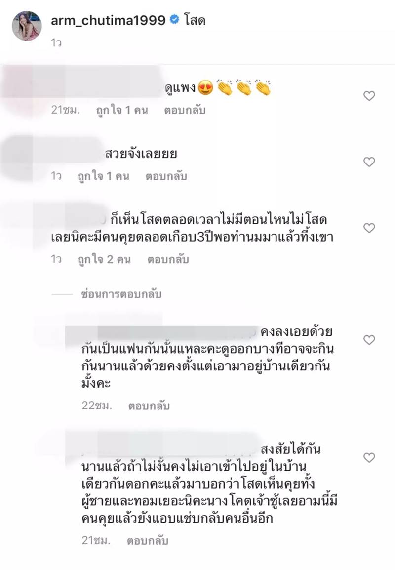 แต่ในขณะเดียวกันกลับมีชาวเน็ตรายหนึ่งเข้าไปคอมเมนต์แฉเรื่องราวร้อนแรง โดยเขียนข้อความที่มีใจความว่า "ก็เห็นโสดตลอดเวลา แต่มีคนคุยอยู่ด้วยตลอด 3 ปี", "เข้ามาอยู่บ้านเดียวกันเหมือนเป็นแฟนกัน มีหลายคนทั้งที่เป็นผู้ชายและเป็นทอม", "เจ้าชู้มาก ขนาดมีคนคุยอยู่แล้ว ยังแอบไปแซ่บกับคนอื่นอีก"