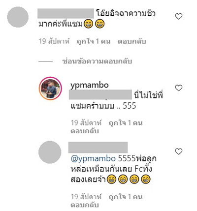 งานนี้ หนุ่มแมมโบ้ ถูกจับตามองว่าจะมีการเข้าวงการบันเทิงตามรอยคุณพ่อไหม เพราะสำเนาถูกต้องหล่อเหมือนคุณพ่อเป๊ะ แถมบางครั้งก็มีคนเข้าใจผิด คิดว่าหนุ่มแมมโบ้เป็นคุณพ่อแซมซะอย่างนั้น