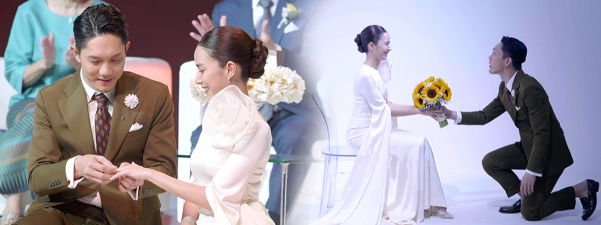 จากนั้นได้ขึ้นสู่พิธีปูเรียงสินสอด นับสินสอดตามธรรมเนียม กระทั่งได้ฤกษ์ 09.09 น. ปั๊บ โปเตโต้ บรรจงสวมแหวนให้กับ ใบเตย สุวพิชญ์ ก่อนที่ใบเตยจะสวมให้กับฝ่ายชายเช่นกัน ตามมาด้วยภาพประทับใจที่ใบเตยก้มลงกราบปั๊บทั้งที่ตักและหน้าอก ซึ่งปั๊บก็ก้มลงไปรับไหว้ เป็นภาพที่น่ารักอบอุ่นมาก ๆ