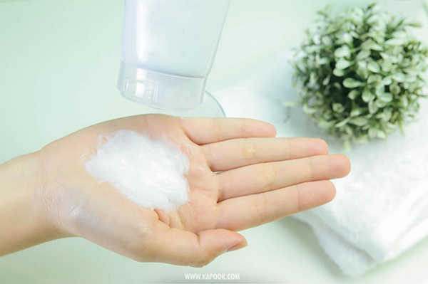 ก่อนที่จะเริ่มทดสอบ เรามาดูเนื้อผลิตภัณฑ์กันเลย โดยเห็นได้ชัดเจนว่าเนื้อของครีมนวดนั้นค่อนข้างเหลว แตกต่างจากเนื้อของครีมหมักผม โลแลน เนทูร่า ที่ค่อนข้างมีความเข้มข้นมากกว่า