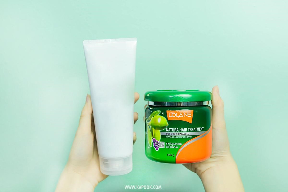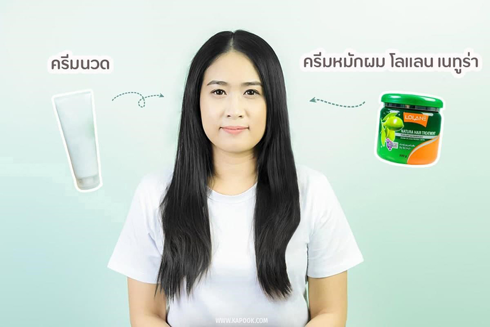 อีกฝั่งหนึ่งใช้ครีมหมักผม โลแลน เนทูร่า