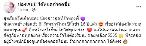 หลังจากนั้นเจนนี่ได้ไลฟ์บรรยากาศปาร์ตี้ฉลองวันเกิดสนุกสนานอบอุ่น พร้อมหน้าครอบครัว รวมถึงนักร้องและทีมงานในค่ายเพลง โดยมีเค้กวันเกิดมาเซอร์ไพรส์ และคุณแม่อวยพรวันเกิดให้ลูกสาว ขอบคุณที่ทำให้มีวันนี้ ขอบคุณที่ทำให้ครอบครัวมีความสุข ได้ทำสิ่งที่ไม่เคยทำ ขอให้สิ่งศักดิ์สิทธิ์คุ้มครองลูกตลอดไป ทำเอาลูก ๆ พากันน้ำตาไหล