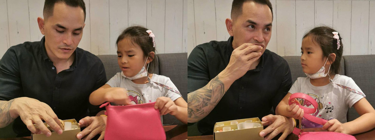 และงานนี้ สงกรานต์ ก็ไม่พลาดที่จะแอบแกล้งลูกสาวเบา ๆ กับการแย่งขนมของ ลูกสาวกิน ทำเอาลูกสาวสุดที่รักถึงกับคิ้วขมวด หน้ายู่ ตาละห้อย มองคุณพ่อกินขนมของตัวเอง แต่ทางคุณพ่อก็ไม่สนพร้อมยังบอกว่า ขนมที่อร่อย คือขนมที่แย่งลูกกิน ฮาาา... ทำเอาแฟน ๆ เข้ามาคอมเมนต์กันเพียบว่า น่ารักมาก คุณพ่อคุณลูกหน้าคล้ายกันสุด ๆ นึกว่าแฝด