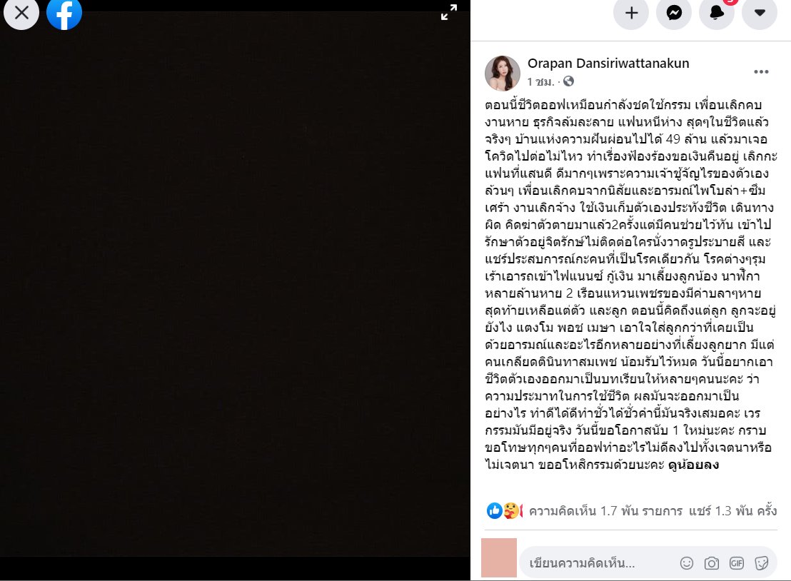 ก่อนที่ ออฟฟี่ แม็กซิม จะโพสต์ภาพสีดำ พร้อมข้อความเปิดใจถึงชีวิตตอนนี้ว่า "ตอนนี้ชีวิตออฟเหมือนกำลังชดใช้กรรม เพื่อนเลิกคบ งานหาย ธุรกิจล้มละลาย แฟนหนีห่าง สุด ๆ ในชีวิตแล้วจริง ๆ บ้านแห่งความฝันผ่อนไปได้ 49 ล้าน แล้วมาเจอโควิดไปต่อไม่ไหว ทำเรื่องฟ้องร้องขอเงินคืนอยู่ เลิกกะแฟนที่แสนดี ดีมาก ๆ เพราะความเจ้าชู้จัญไรของตัวเองล้วน ๆ เพื่อนเลิกคบจากนิสัยและอารมณ์ไพโบลาร์+ซึมเศร้า งานเลิกจ้าง ใช้เงินเก็บตัวเองประทังชีวิต เดินทางผิด คิดฆ่าตัวตายมาแล้ว 2 ครั้ง แต่มีคนช่วยไว้ทัน เข้าไปรักษาตัวอยู่จิตรักษ์ไม่ติดต่อใครนั่งวาดรูประบายสี และแชร์ประสบการณ์กะคนที่เป็นโรคเดียวกัน โรคต่าง ๆ รุมเร้า เอารถเข้าไฟแนนซ์ กู้เงินมาเลี้ยงลูกน้อง นาฬิกาหลายล้านหาย 2 เรือน แหวนเพชรของมีค่าบลา ๆ หาย สุดท้ายเหลือแต่ตัว และลูก