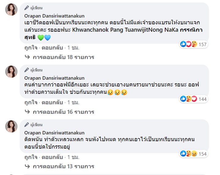 ตอนนี้คิดถึงแต่ลูก ลูกจะอยู่ยังไง แตงโม พอช เมษา เอาใจใส่ลูกกว่าที่เคยเป็น ด้วยอารมณ์และอะไรอีกหลายอย่างที่เลี้ยงลูกยาก มีแต่คนเกลียดตินินทาสมเพช น้อมรับไว้หมด วันนี้อยากเอาชีวิตตัวเองออกมาเป็นบทเรียนให้หลาย ๆ คนนะคะ ว่าความประมาทในการใช้ชีวิต ผลมันจะออกมาเป็นอย่างไร ทำดีได้ดีทำชั่วได้ชั่ว คำนี้มันจริงเสมอค่ะ เวรกรรมมันมีอยู่จริง วันนี้ขอโอกาสนับ 1 ใหม่นะคะ กราบขอโทษทุก ๆ คนที่ออฟทำอะไรไม่ดีลงไปทั้งเจตนาหรือไม่เจตนา ขออโหสิกรรมด้วยนะคะ"