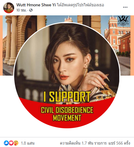 ขณะที่ล่าสุด (2 กุมภาพันธ์ 2564) วุด มน ชเว ยี (Wutt Hmone Shwe Yi) หรือ คิท คิท นักแสดงหญิงระดับท็อปของเมียนมา ก็เป็นอีกคนที่ออกมาประกาศตัว ไม่เห็นด้วยกับการรัฐประหารที่เกิดขึ้น