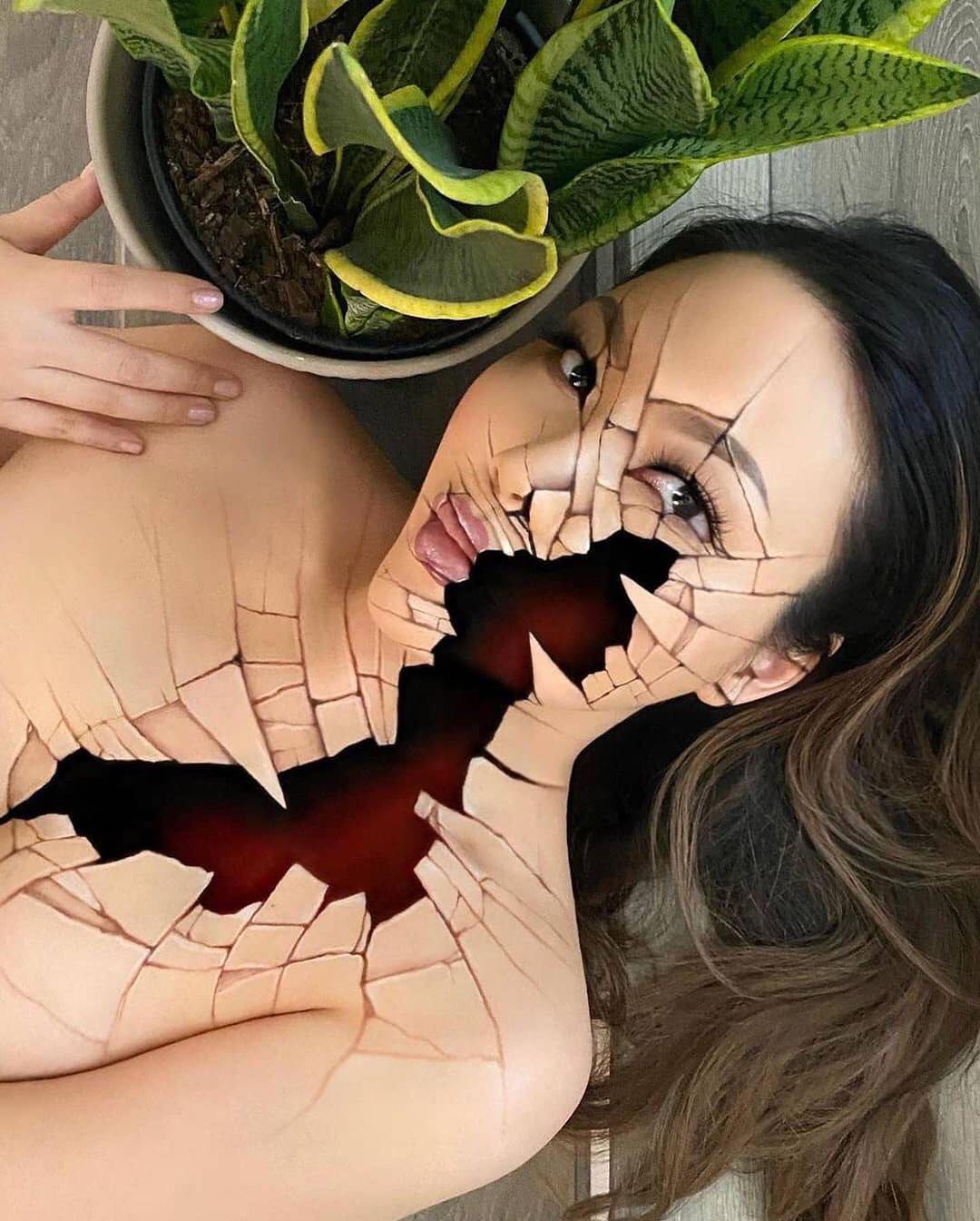 Mimi Choi ช่างแต่งหน้าสาวชาวแคนาดา โชว์สกิลการแต่งหน้าแนวหลอนฝีมือระดับเทพ ซับซ้อนหลายมิติ ที่มีทั้งการแต่งหน้าและการเพ้นต์ตามเรือนร่าง เรียกได้ว่าเป็นงานศิลปะที่สุดยอดครีเอตมาก ๆ อีกทั้งยังมีมุมมองแปลกใหม่ จนเกิดเป็นภาพลวงตาอันสวยงามอีกด้วย