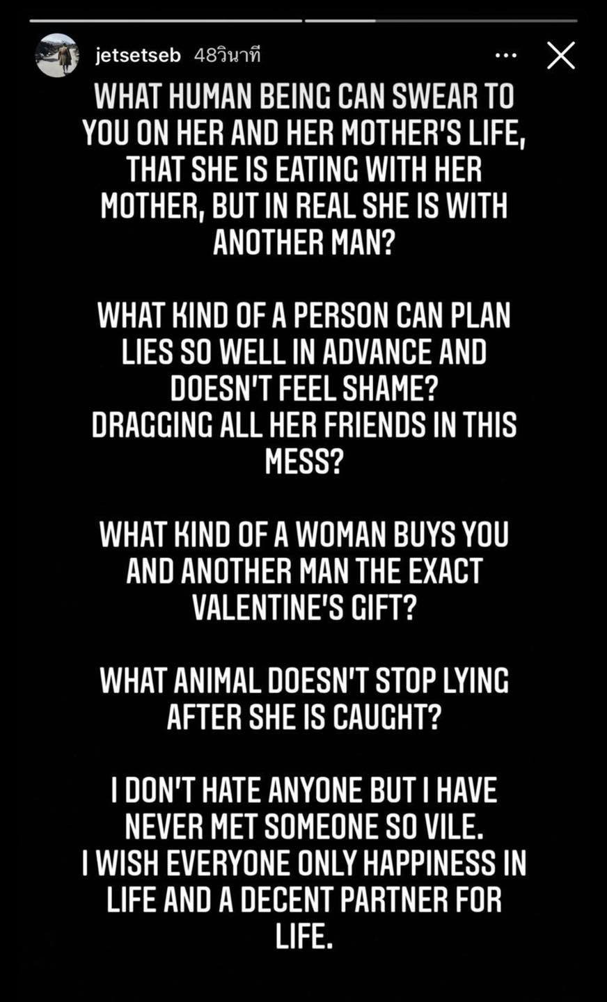 - ผมไม่ได้เกลียดใคร แต่ก็ไม่เคยเจอใครที่ร้ายแบบนี้ ฉันหวังว่าทุกคนจะมีแต่ความสุขในชีวิตและได้มีคู่ชีวิตที่เหมาะสม