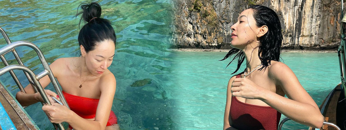 จูน สาวิตรี โรจนพฤกษ์ พิธีกรแถวหน้าของเมืองไทย เจ้าของลักยิ้มพราวเสน่ห์ ได้เผยมุมเซ็กซี่ระหว่างไปเที่ยวพักผ่อนที่กระบี่ ในแฟชั่นชุดว่ายน้ำ นาน ๆ ทีจะได้เห็นพิธีกรสาวคนนี้อวดหุ่นแซ่บสักครั้ง