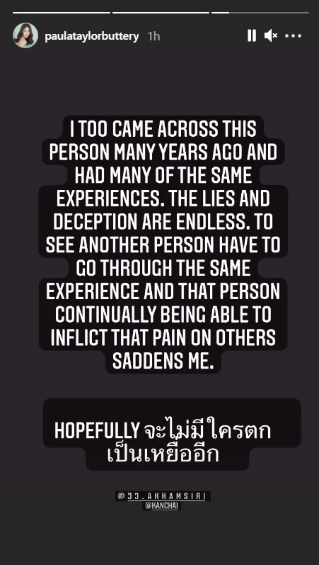 กระทั่งล่าสุด (13 มีนาคม 2564) เมื่อ พอลล่า เทเลอร์ ออกมาโพสต์ข้อความเกี่ยวกับเรื่องนี้ พร้อมแท็ก จั๊กจั่น อคัมย์สิริ และ หนุ่ม กรรชัย ในทำนองว่าได้ข้ามผ่านบุคคลนั้นมานานแล้ว เจอประสบการณ์เหมือนกัน พอเห็นคนอื่นต้องเจอแบบเดียวกัน และรู้ว่าคนนั้นยังสร้างความเสียหายให้คนอื่นได้อีก ทำให้รู้สึกแย่ และหวังว่าจะไม่มีใครตกเป็นเหยื่ออีก
