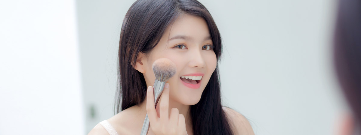 สาวหน้ายาวควรปัดแก้มในลักษณะแนวนอน เพื่อเพิ่มความกว้างของใบหน้า โดยเริ่มปัดจากกึ่งกลางแก้มยาวไปจนถึงกึ่งกลางหู