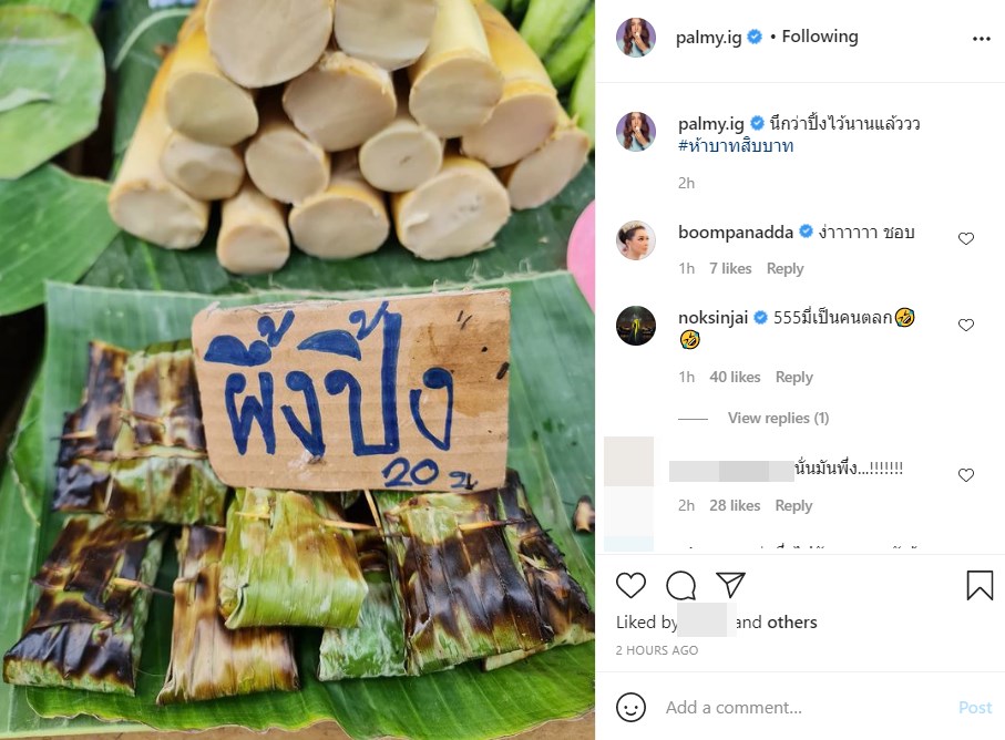โดยสาว ปาล์มมี่ โพสต์ภาพอาหารท้องถิ่นที่อยู่ในห่อใบตองปิ้ง วางขายติดป้าย "ผึ้งปิ้ง 20 บ." พร้อมแคปชั่นว่า "นึกว่าปิ้งไว้นานแล้ววว #ห้าบาทสิบบาท"