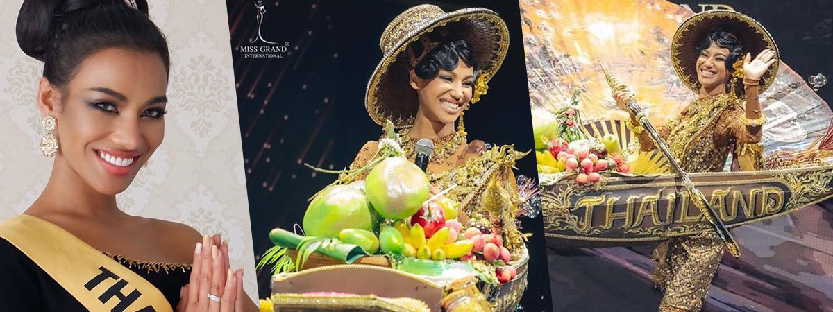ยลโฉม น้ำ พัชรพร จันทรประดิษฐ์ มิสแกรนด์ไทยแลนด์ 2020 ตัวแทนสาวไทย 1 ใน 3 สาวงามผู้คว้ารางวัลชุดประจำชาติยอดเยี่ยม มิสแกรนด์ อินเตอร์เนชั่นแนล 2020 (Miss Grand International 2020) ด้วยชุดตลาดน้ำดำเนินสะดวก ออกแบบและตัดเย็บโดยร้านอาร์ทอัครัชเนรมิตศิลป์ สวยงดงามแบบไทย ๆ