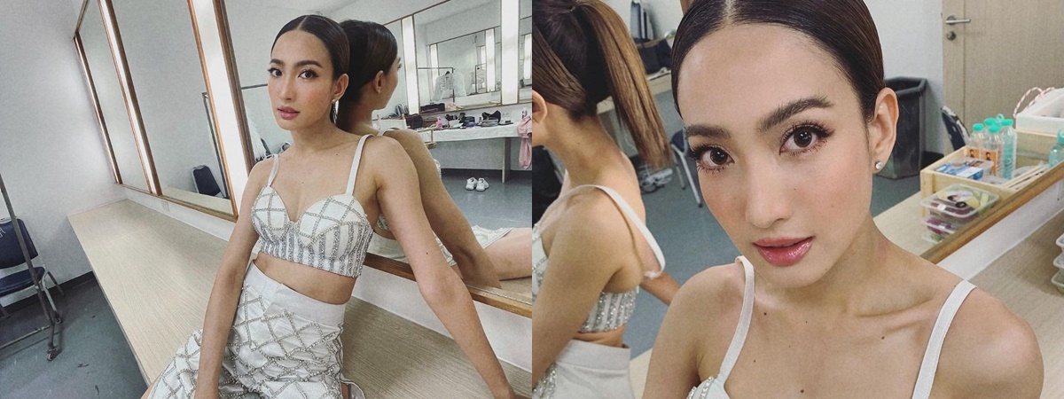 งานนี้สาวแต้วมาในชุดสีขาวเซ็กซี่ ช่วงบนเป็นครอปสายเดี่ยว เผยให้เห็นกล้ามหน้าท้องสุดสตรอง ส่วนช่วงล่างเป็นกางเกงขายาว แต่เพิ่มความแซ่บด้วยดีเทลด้านข้างที่แหวกสูงปรี๊ดเผยเรียวขานวลเนียน มีโชคเกอร์ระยิบระยับที่คอยิ่งดูเซ็กซี่มาก