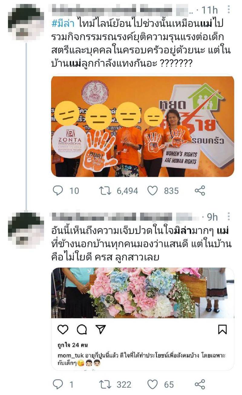 ทางด้านชาวเน็ตที่ติดตามข่าวนี้ก็ได้ขุดคุ้ยพบว่า แม่มีล่า เคยไปร่วมกิจกรรมรณรงค์ต่อต้านการใช้ความรุนแรงในเด็กและสตรีมาก่อน และหลังเกิดเหตุ แม่โพสต์ไอจีโอ๋หมา แต่ไม่ได้โพสต์ถึงลูกสาวแต่อย่างใด