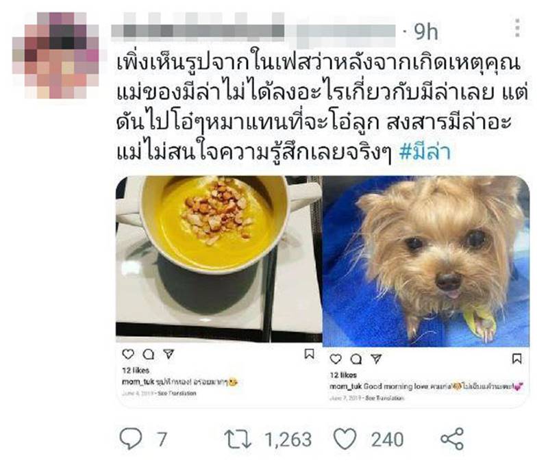 ตอนนี้แม่ของมีล่าปิดอินสตาแกรมเป็นไพรเวตแล้ว ส่วนพี่สาวก็ยังไม่ได้ออกมาแสดงความเห็นใด ๆ กับเรื่องที่เกิดขึ้น