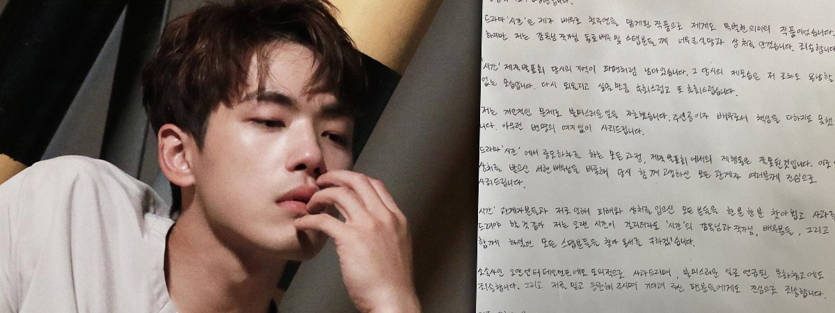 ผมได้นำเหตุการณ์ที่น่าอับอายมาสู่ตัวเองเนื่องจากปัญหาส่วนตัว ผมไม่สามารถทำตามความรับผิดชอบในฐานะนักแสดงนำได้ ผมขอโทษจริง ๆ ครับ โดยไม่มีข้อแก้ตัวใด ๆ เลย ช่วงที่ผมถอนตัวออกจากซีรีส์ Time และพฤติกรรมที่แสดงในงานแถลงข่าวนั้น ผมเป็นคนผิดทั้งหมด ผมอยากขอโทษอย่างจริงใจต่อนักแสดงหญิง ซอฮยอน ที่เจ็บปวดกับเหตุการณ์ในวันนั้น และทีมงานทุกคนที่ทำงานอย่างหนัก