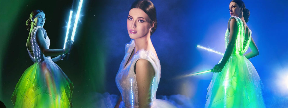 โดยชุดอาศัยเทคนิคการใช้ไฟทำให้เกิดการเรืองแสง มาพร้อมดาบหรือกระบี่เลเซอร์คู่ ที่หลายคนเห็นแล้วก็ต้องนึกถึงไลท์เซเบอร์ (Lightsaber) จากในภาพยนตร์ชื่อดังอย่างสตาร์ วอร์ส โดยทีมงานเผยว่า ชุดนี้ใช้เวลาสร้างสรรค์นานถึง 8 เดือนด้วยกัน