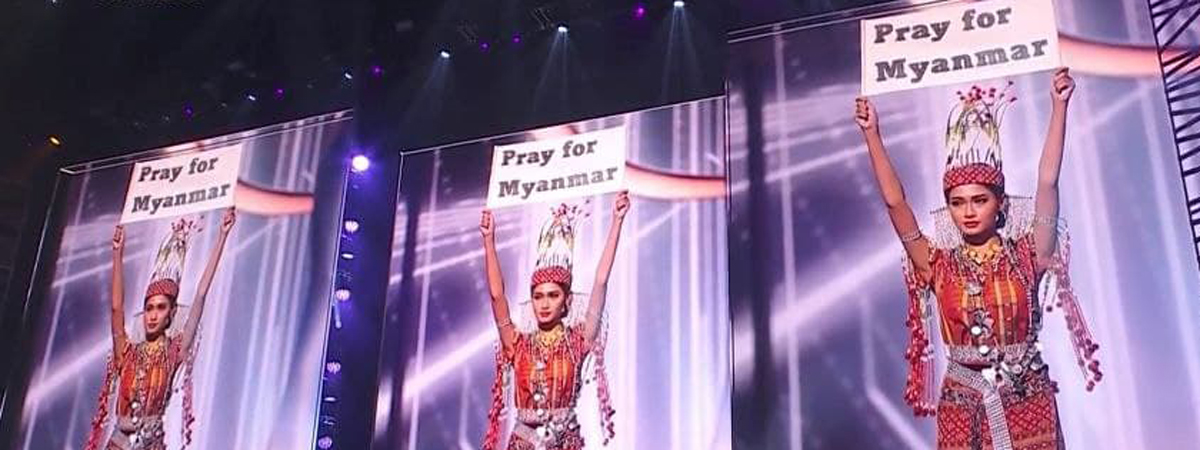 แต่ชุดที่ถูกพูดถึงมากที่สุดเห็นจะเป็นของ ตูซาร์ หวิ่น วิน (Thuza Wint Lwin) สาวงามเมียนมา ซึ่งเปิดตัวในชุดประจำชาติ พร้อมชูป้าย "Pray for Myanmar" จากเหตุการณ์รัฐประหารและสังหารประชาชนจำนวนมากในเมียนมา
