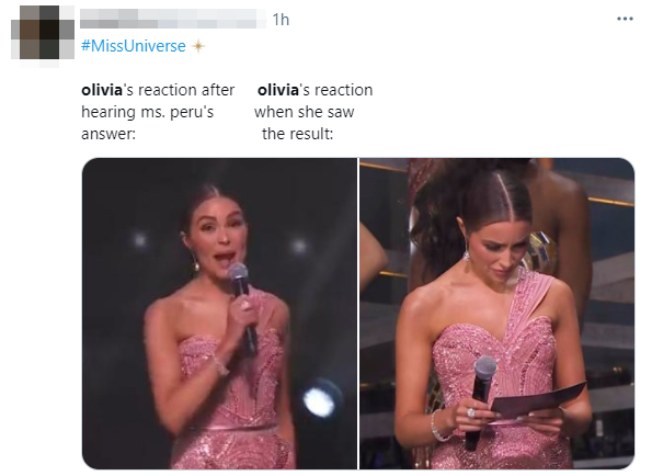 บอกเลยว่าแม้จะเป็นเพียงช่วงเวลาไม่นาน แต่ท่าทางของโอลิเวียก็ได้กลายมาเป็นที่พูดถึงกันอย่างมาก ซึ่งงานนี้ก็ไม่รู้ว่าเป็นเพราะผลออกมาผิดคาด ค้านสายตา หรืออะไรยังไง ที่ทำให้เธอถึงกับแสดงสีหน้าออกมาชนิดเก็บอาการไม่อยู่เช่นนั้น แต่ที่แน่ ๆ ก็คือรีแอ็คชั่นของเธอก่อนจะประกาศผลผู้ชนะ ได้กลายมาเป็นชอตมีมในตำนานอีกบทหนึ่ง ซึ่งกลายเป็นคลิปไวรัลในตอนนี้ไปแล้ว