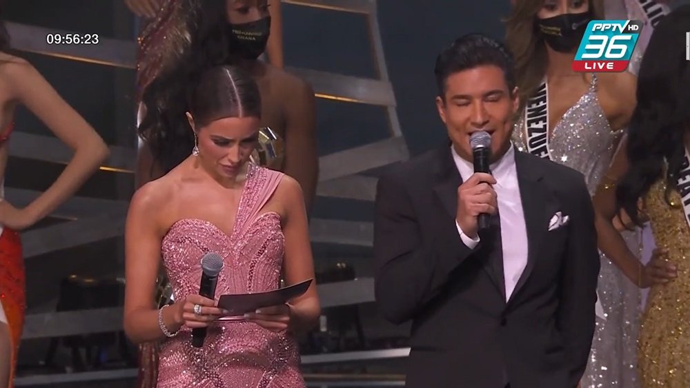 จากนั้นภาพก็ตัดไปหา 2 สาวงามสุดท้าย ที่จะได้ลุ้นกันว่าใครจะมงลง ระหว่าง มิสบราซิล กับ มิสเม็กซิโก