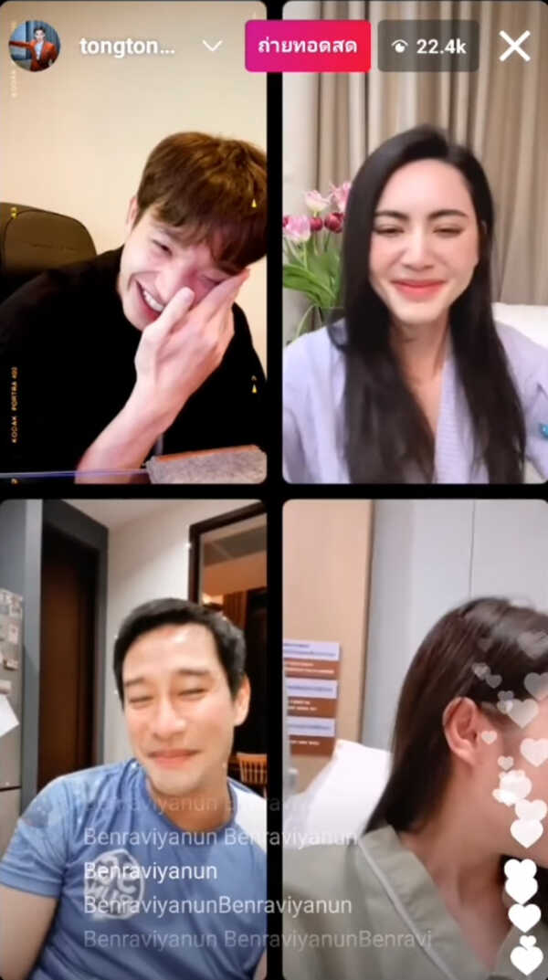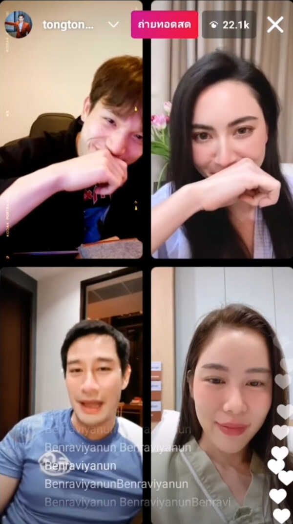 ล่าสุด (19 พฤษภาคม 2564) มีชาวเน็ตขุดคลิปไลฟ์ผ่านอินสตาแกรมของดาราหนุ่ม ตงตง กฤษกร เมื่อวันที่ 10 พฤษภาคม 2564 ซึ่งได้ไลฟ์พูดคุยร่วมกับนักแสดงจากเรื่องวันทอง ได้แก่ ใหม่ ดาวิกา, ป้อง ณวัฒน์ ซึ่งอยู่ระหว่างกักตัวที่บ้าน หลังจากเข้ารับการรักษาโควิด และ เบญ เรวิญานันท์ แอดมิตที่โรงพยาบาล เนื่องจากปวดท้องกระเพาะ มาร่วมพูดคุยกันอีกครั้ง