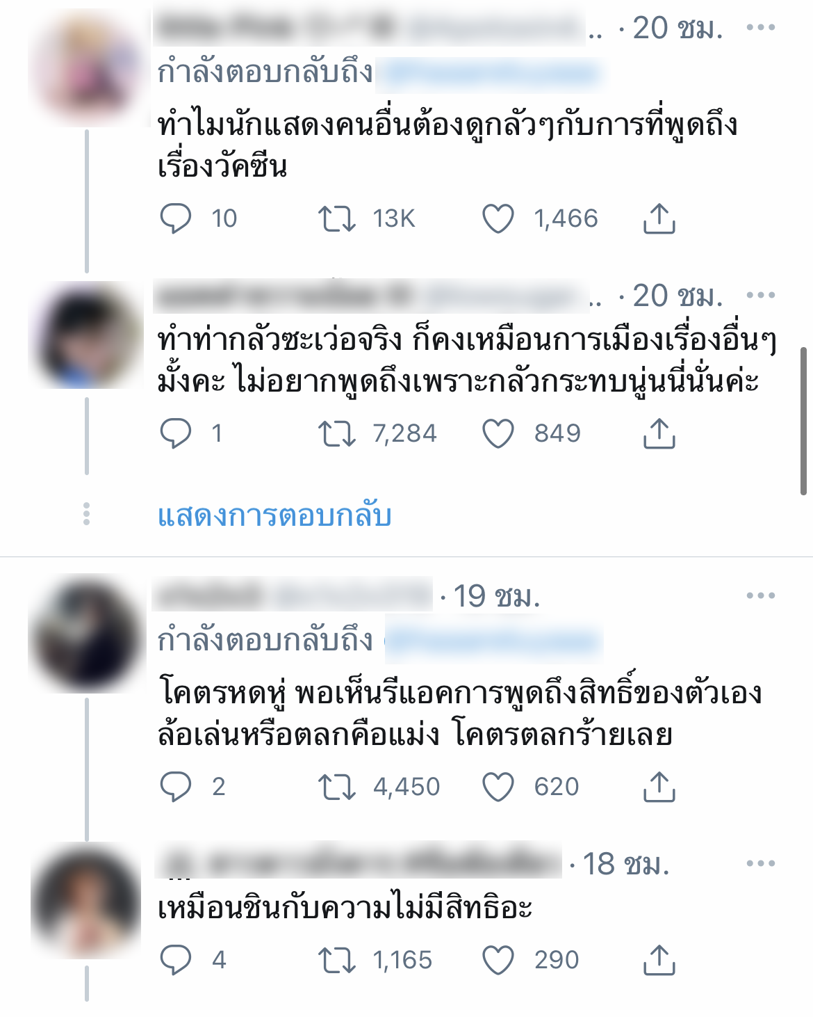 แต่เมื่อชาวเน็ตหยิบคลิปดังกล่าวขึ้นมาเป็นประเด็นก็เกิดดราม่า เนื่องจากขณะที่ป้องกำลังพูดเรื่องวัคซีน ใหม่และตงตงทั้งยิ้มทั้งหัวเราะ ทำเหมือนหาอะไรทำ จึงมองว่าขณะที่คนอื่นกำลังพูดทำไมถึงไม่มีมารยาทในการฟัง บ้างก็บอกว่าดาราชอบเป็นแบบนี้ ชอบหลีกเลี่ยงไม่พูดเรื่องอ่อนไหวเพราะกลัวจะกระทบ บ้างก็มองว่าเรื่องวัคซีนเป็นสิทธิพื้นฐานที่ทุกคนต้องได้รับ ไม่ใช่เรื่องน่าอายอะไรที่จะพูด อย่าชินกับการไม่มีสิทธิ์เลือก อีกทั้งยังทำท่าทางดูเว่อร์ไปหน่อยอีกด้วย