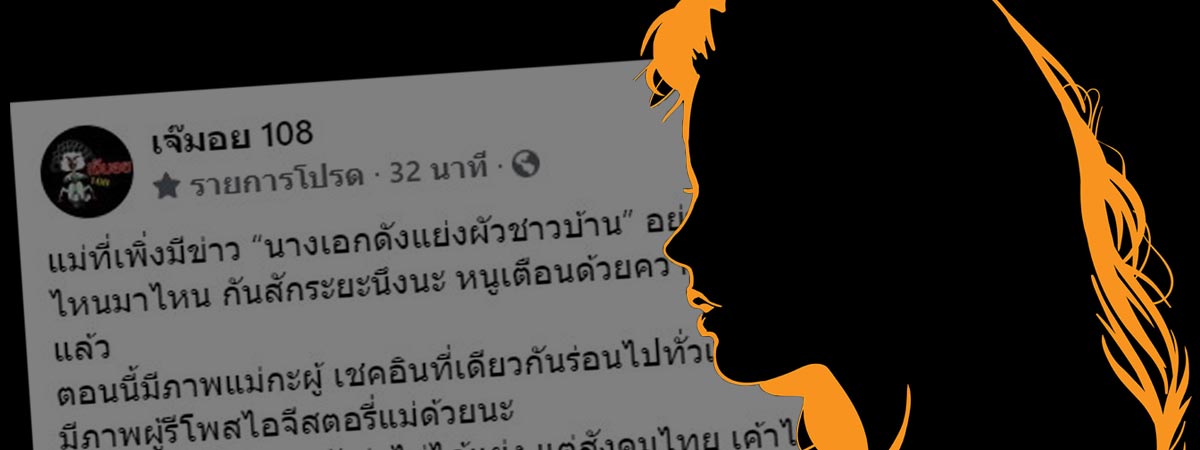 "แม่ที่เพิ่งมีข่าว "นางเอกดังแย่งผัวชาวบ้าน" อย่าเพิ่งเปิดตัวแฟน หรืออย่าเพิ่งไปไหนมาไหน กันสักระยะหนึ่งนะ หนูเตือนด้วยความหวังดี เพราะคนพุ่งเป้าไปที่แม่แล้ว ตอนนี้มีภาพแม่กะผู้ เช็กอินที่เดียวกันร่อนไปทั่วแล้ว