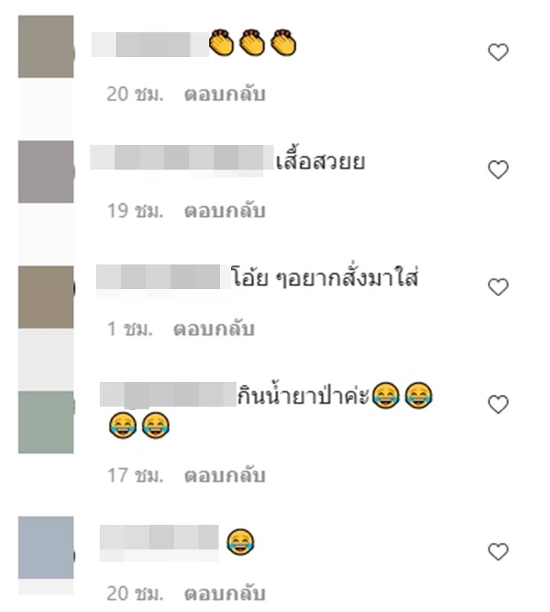 งานนี้ทำเอาหลายคนฮาครืน เห็นแล้วเข้าไปคอมเมนต์ขำขันกันสนั่น พร้อมกับถามไถ่ว่าเสื้อตัวนี้ท่านได้มาจากที่ไหน อยากจะขอ cf ใส่มั่ง