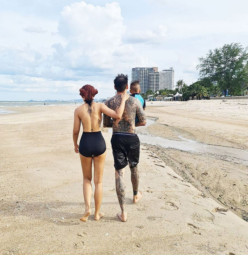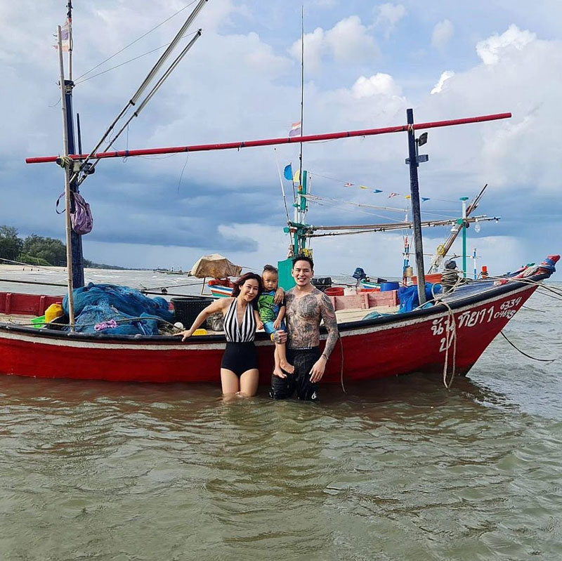 แทค ภรัณยู ขอจิ๊กชุดบิกินี่ของศรีภรรยามาใส่โชว์ความแซ่บซี้ดที่ทำเอาตาค้าง แต๊บสุดเนียน ในทริปยกครอบครัวเที่ยวทะเล จูงมือ น้องภารัน เล่นน้ำ
