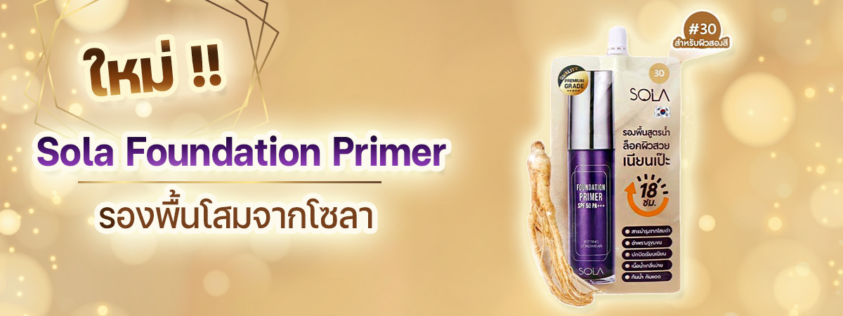 Sola Foundation Primer SPF50 PA+++ รองพื้นโสมตัวใหม่จากโซลา ที่เป็นทั้งครีมบำรุง กันแดด และรองพื้น ช่วยให้หน้าสวยใสเป็นธรรมชาติ หมดปัญหาหน้าโบ๊ะ หน้าเป็นคราบ แถมยังมาในรูปแบบรองพื้นแบบซอง ราคาเบา ๆ พกพาสะดวก และหาซื้อง่ายในเซเว่นอีกด้วย