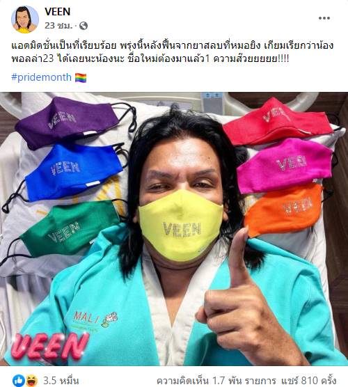 ก่อนหน้านี้เฟซบุ๊ก VEEN ก็ได้โพสต์ภาพต่าง ๆ เพื่อให้เหล่าผู้ติดตามเข้ามาให้กำลังพระมหาเทวีเจ้าในการผ่าตัดแปลงเพศครั้งนี้ เช่นภาพที่มีแคปชั่นว่า "แอดมิดชั่นเป็นที่เรียบร้อย พรุ่งนี้หลังฟื้นจากยาสลบที่หมอยิง เกียมเรียกว่าน้องพอลล่า23 ได้เลยนะน้องนะ ชื่อใหม่ต้องมาแล้ว1 ความส๊วยยยยย!!!! #pridemonth"