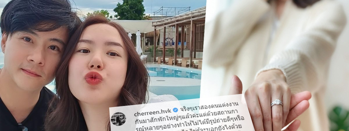 โดย เชอรีน ได้โพสต์บอกข่าวดีนี้ผ่านอินสตาแกรมส่วนตัวเป็นภาพที่เจ้าตัวสวมแหวนแต่งงานพร้อมระบุข้อความว่า "จริง ๆ เราสองคนแต่งงานกันมาสักพักใหญ่ ๆ แล้วค่ะ แต่ด้วยสถานการณ์หลาย ๆ อย่างทำให้ไม่ได้มีรูปถ่ายดี ๆ หรือโพสต์บอกกล่าวอะไร ไม่รู้จะบอกยังไงด้วย เขิน เอาเป็นว่าตอนนี้ออกเรือนแล้วค้าบบ #น้องสาวคนเล็กไม่เด็กแล้วน้าา #my28mvalentine"