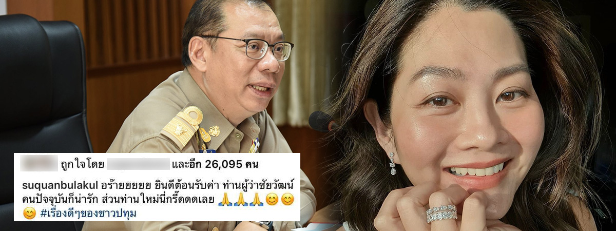 โดยเจ้าตัวได้โพสต์รูปผู้ว่าฯ ณรงค์ศักดิ์ ลงอินสตาแกรมส่วนตัว พร้อมข้อความว่า “อร๊ายยยยย ยินดีต้อนรับค่า ท่านผู้ว่าชัยวัฒน์คนปัจจุบันก็น่ารัก ส่วนท่านใหม่นี่กรี๊ดดดเลย เรื่องดี ๆ ของชาวปทุม”