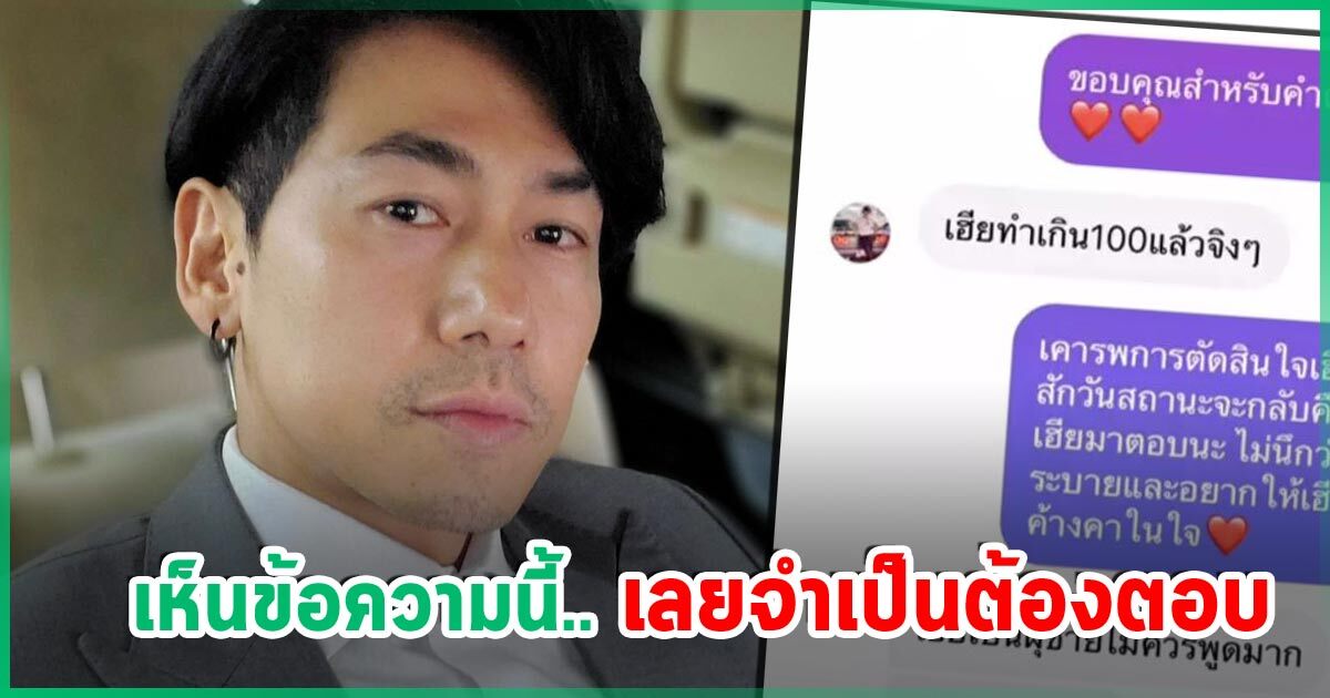 งานนี้แฟนคลับคนดังกล่าวก็ได้ตอบกลับว่าเคารพการตัดสินใจเฮีย แต่ก็ยังแอบหวังว่าสักวันสถานะจะกลับคืนดังเดิม ขอบคุณที่มาตอบ ไม่นึกว่าจะตอบ แค่อยากระบายและอยากให้เห็นข้อความที่ค้างคาในใจ ซึ่งทางเพชรจ้าก็ตอบกลับว่า "เฮียเป็นผู้ชายไม่ควรพูดมาก เงียบ จะดีที่สุด เห็นเราบอกเฮียเย็นชา เลยจำเป็นต้องตอบ จบกันด้วยดี ดีแล้ว ขอบใจมากจ้า"