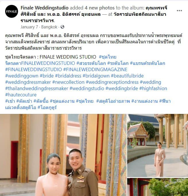 เพจดังกล่าวระบุว่า คุณพรพจี ศิริสิทธิ์ และ พ.ต.อ. ธิติสรรค์ อุทธนผล กราบขอพรและรับประทานน้ำพระพุทธมนต์ จากสมเด็จพระสังฆราช สกลมหาสังฆปริณายก เพื่อความเป็นสิริมงคลในการดำเนินชีวิตคู่ ที่วัดราชบพิธสถิตมหาสีมารามราชวรวิหาร ซึ่งนั่นหมายความว่า ความสัมพันธ์ของทั้งคู่ไม่น่าเป็นแค่เพื่อนอย่างที่พ่อของใบเตยฝากมาบอก