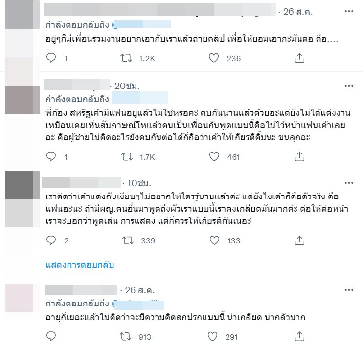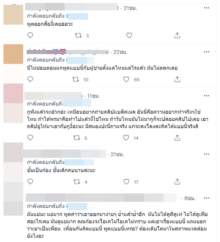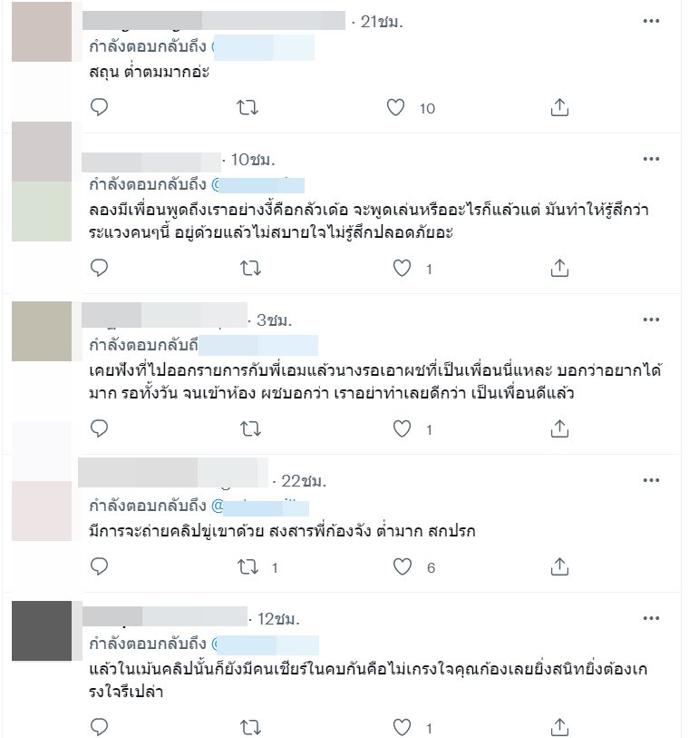 ทั้งนี้ หลายคนมองว่าคำพูดดังกล่าวไม่โอเคอย่างมาก เป็นเพื่อนกันมาพูดขนาดนี้ แล้วตัว ก้อง สหรัถ ก็ไม่ได้โสด ดูเสียมารยาท ไม่ให้เกียรติก้องและแฟน แถมยังเข้าข่ายคุกคามทางเพศด้วย แถมยังบอกจะถ่ายคลิปแล้วเอามาขู่ แบบนี้ไม่ตลกเลย ซึ่งหลายคนก็ตกใจว่าทำไมกล้าพูดแบบนี้ออกสื่อ คิดแบบนี้จริง ๆ เหรอ น่ากลัวมาก