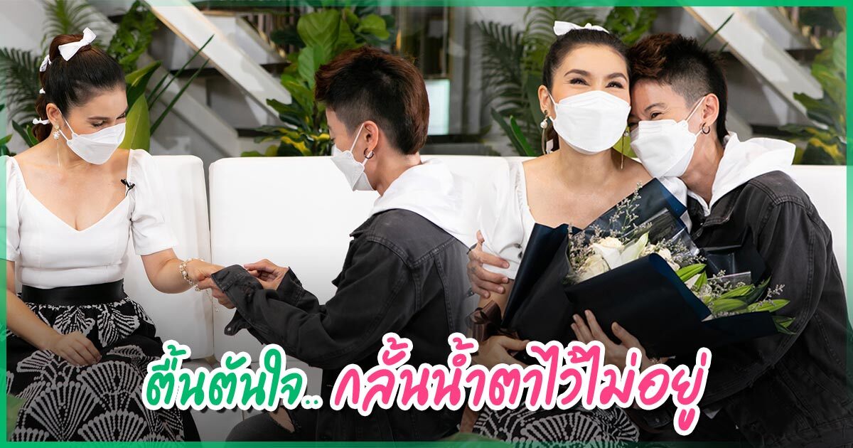 ฝน ธนสุนธร : แล้วอีกอย่างเราก็แค่จัดกันแบบเป็นพิธีของเราเล็ก ๆ เพราะยังไม่สามารถจดทะเบียนได้