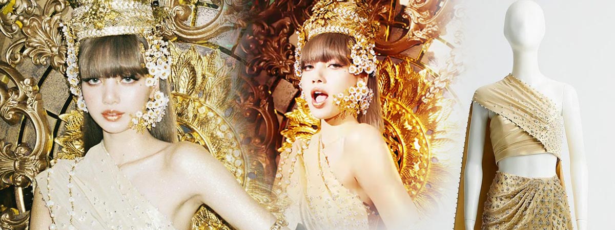 โดยลิซ่าได้ปรากฏตัวในชุดเสื้อไหล่เดี่ยวแต่งเคปยาว และกระโปรงสั้นจับเดรปผ้าไหมสีเหลืองทอง ตัดเย็บจากผ้าไหมยกลำพูนลายพานจักรพรรดิยกทองประดับด้วยคริสตัลจาก Swarovski ที่ปักด้วยมืออย่างประณีต จนเกิดเป็นชุดที่มีความเรียบหรูและสะท้อนถึงความเป็นไทยได้อย่างลงตัว โดยดีไซเนอร์คนเก่งอย่าง หมู พลพัฒน์