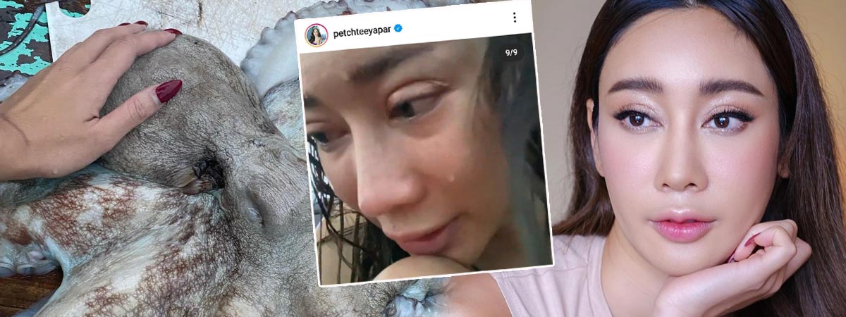 ทั้งนี้ น้ำเพชร ฏีญาภาร์ ได้โพสต์ภาพและคลิปบอกเล่าเรื่องราวที่เกิดขึ้นกับตนเองและน้องหมึกยักษ์ตัวดังกล่าวลง IG พร้อมคลิปตอนที่ตนเองร้องไห้ขณะลูบหัวน้อง โดยข้อความทั้งหมด มีดังนี้