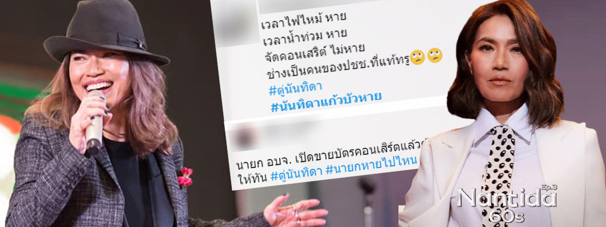 ตู่ นันทิดา เตรียมขึ้นคอนเสิร์ตร้องเพลงอีกครั้ง เปิดขายบัตรคอนเสิร์ตแล้ว เจอคนดราม่า ตั้งข้อสงสัยเอาเวลาแก้ปัญหาน้ำท่วมไปซ้อมร้องเพลงหรือไม่