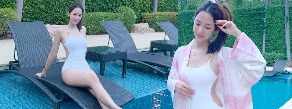 กลับมาเผยความแซ่บอีกครั้ง แม็กกี้ อาภา อวดผิวขาวออร่าในชุดว่ายน้ำเว้าข้าง ทำบรรยากาศริมสระน้ำร้อนแรงขึ้นกว่าเดิม