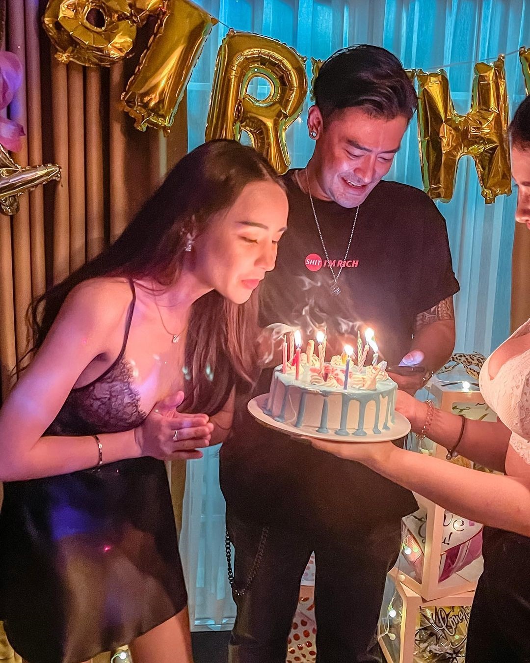 ทั้งนี้ ได้โพสต์ภาพบรรยากาศภายในงาน พร้อมกับรูปคู่หวาน ๆ แนบชิดกับแฟนหนุ่ม มองมุมไหนก็เซ็กซี่ยั่วใจ เชื่อว่านาทีนี้หนุ่ม ๆ ทั้งหลายต่างก็อิจฉาหนุ่มเติ้ลอย่างแน่นอน