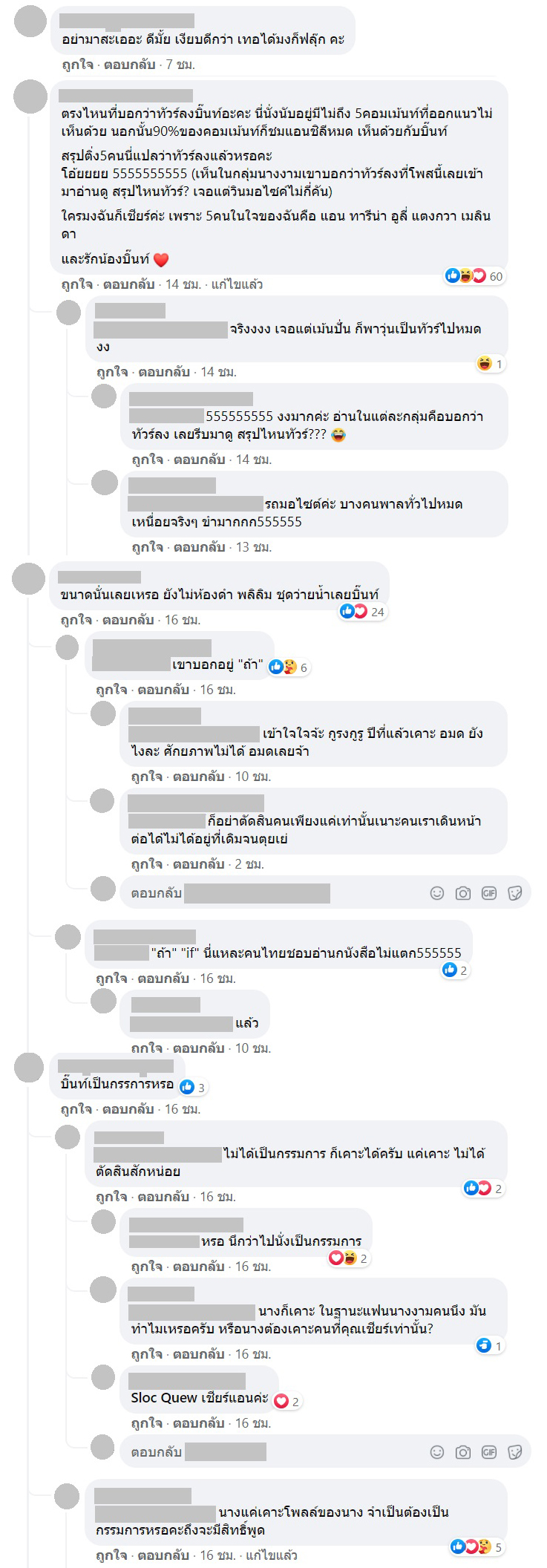 ขณะที่แฟนนางงามบางส่วนก็รู้สึกไม่พอใจและมีการคอมเมนต์ในเพจเฟซบุ๊ก พูดได้มั้ยพี่จี้ โดยแซะบิ๊นท์ประมาณว่าเอาอะไรมามั่นใจ เพราะแอนยังไม่ได้เข้ารอบลึก ๆ ไปถึงชุดว่ายน้ำหรือพรีลิมเลย ที่บิ๊นท์ได้มงก็ฟลุคเหมือนกัน จนกลายเป็นว่าแฟนนางงามต่างคนต่างคอมเมนต์ตีโต้กันไป-มา
