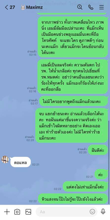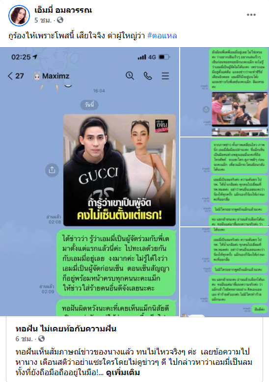 ต่อมา วันที่ 15 ตุลาคม 2564 แม็กเปิดใจเกี่ยวกับเรื่องนี้ แต่ละคำแซ่บซี้ดสุด ๆ โดยเจ้าตัวระบุว่า เรื่องนี้ก็อยากให้พี่เอ็มมี่หยุดร้องไห้ ไม่ต้องร้องไห้ทุกเรื่องก็ได้ การร้องไห้ไม่ได้แปลว่าคุณเป็นนางเอก ให้คุณมองดีกว่าว่าเข้ามาวงการบันเทิงด้วยวิธีไหน คุณลองใช้ความสามารถไหม การที่คุณบอกว่ากว่าจะมาเป็น เอ็มมี่ แม็กซิม วันนี้คืออะไร ถ้าคุณจะร้องไห้แบบเฟกมันดูออก ตนก็ทำได้ แต่คิดว่าทำได้เนียนกว่า ตนสุดแล้วจริง ๆ อย่าทำร้ายกันอีกเลย รวมถึงจับผิดเรื่องที่เอ็มมี่เป็นลม แต่ทำไมยังถือโทรศัพท์ในมือได้