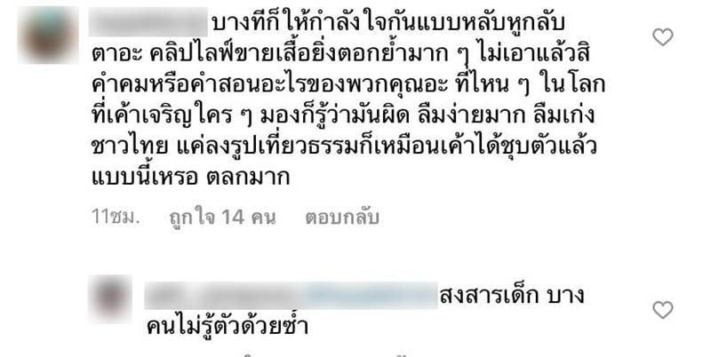 อย่างไรก็ตาม ไม่วายมีดราม่าขึ้นอีกจนได้ เมื่อคอมเมนต์ของชาวเน็ตบางกลุ่มได้แสดงความไม่เข้าใจ ว่าคนจะหลับหูหลับตาให้กำลังใจกันทำไม มองว่าพฤติกรรมในครอบครัวนี้ไม่น่าจะใช่เรื่องปกติ พร้อมจี้ให้ออกมาชี้แจงกรณีคลิปขายเสื้อที่พฤติกรรมดูจะรุนแรงกว่าเดิม