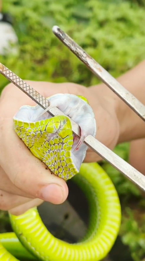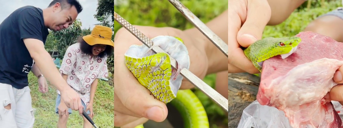 โดยในคลิปมี โจโฉ ซึ่งเป็นผู้เชี่ยวชาญด้านสัตว์มีพิษ ได้จับงูเขียวหางไหม้ง้างปากดู ก่อนจะพบว่าตัวนี้มีเขี้ยว 3 ซี่ จากที่ปกติแล้วจะมีแค่ 2 พร้อมอธิบายว่างูเขียวจะมีการผลัดเขี้ยวใหม่ แต่บางตัวเขี้ยวเก่าไม่หัก แต่งูคิดว่าหักไปแล้ว จึงผลัดเขี้ยวใหม่ออกมา ทำให้มีเขี้ยวพิษ 3 เขี้ยว