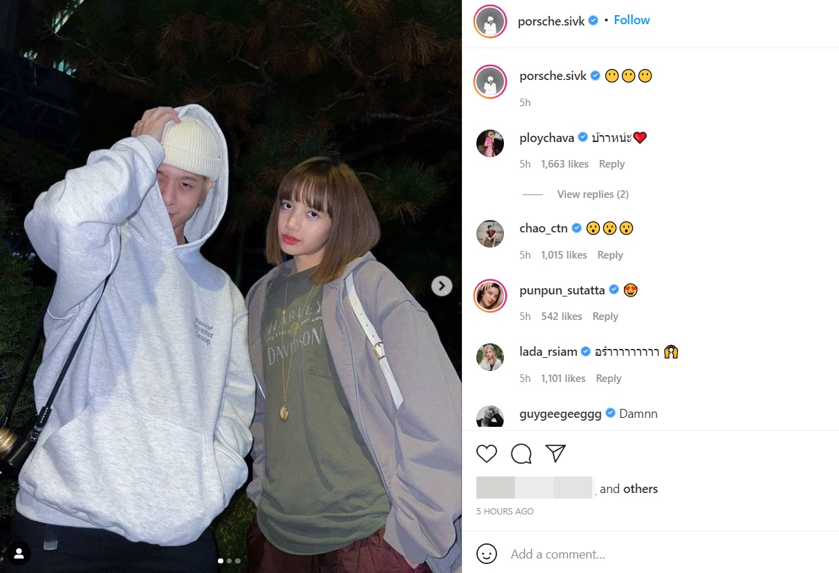 โดยก่อนหน้านี้ ปอร์เช่ เคยโพสต์ภาพคู่กับลิซ่ามาแล้ว ในตอนที่ BLACKPINK มาโชว์คอนเสิร์ตที่ไทย ซึ่งเจ้าตัวเผยว่ารู้จักกับลิซ่ามานานแล้วตั้งแต่เด็ก ก่อนอีกฝ่ายจะเดบิวต์ โดยเรียกเขาว่า "เจ้" และถูกชวนไปหลังเวทีเพื่อไปถ่ายรูป ที่โพสต์รูปคู่ก็เพราะเจ้เขาบอกให้โพสต์ เรียกว่าเป็นมิตรภาพดี ๆ กับโมเมนต์น่ารัก ที่ทำเอาแฟนคลับชื่นใจไปตาม ๆ กัน
