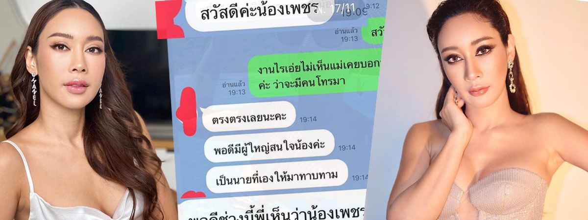 ทำเอานางงามสาว น้ำเพชร ฏีญาภาร์ ถึงกับเป็นงง เมื่อจู่ ๆ ก็มีบุคคลปริศนาแอดไลน์มาบอกว่าจะติดต่อเรื่องงาน ได้คอนแท็กต์มาจากผู้จัดการน้อง ซึ่งพอถามว่างานอะไร อีกฝ่ายก็บอกว่า พอดีมีผู้ใหญ่สนใจน้อง เป็นนายพี่เองให้มาทาบทาม พอดีเห็นว่าช่วงนี้ไม่ค่อยมีงาน ผู้ใหญ่เลยเสนอมาให้เธอ 3 แสนบาท ทำงานง่าย ๆ ไปชั่วโมงเดียวก็กลับ หรืออยากเรียกเท่าไร ลองเรียกมาได้เลย